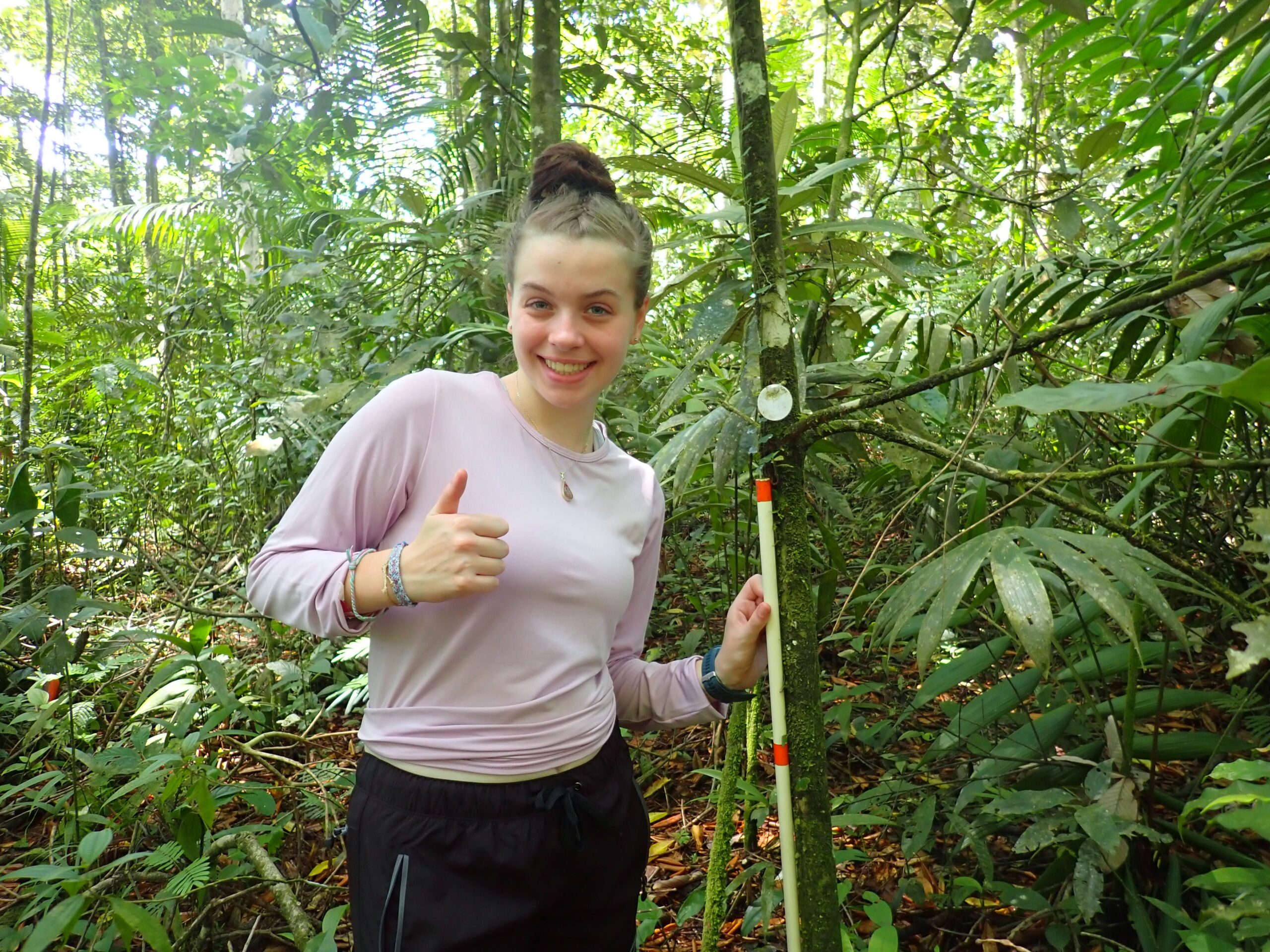 ¡Hola Porter’s! Today, we all left early in the morning for our group trips. My group went back to Bijagual to continue collecting data in the same plot we worked on yesterday. When we got off the bus, we went straight into the jungle and got to work. My job this time was to measure the diameter of the trees with Wei, while Ariana and Hadley scouted new trees and cleaned the tags, while Maggie and Charlotte measured the height and amount of other flora around the tree. Meanwhile, Holly recorded all the data on paper. When we finished collecting data, we stopped by a big leafcutter ant colony to talk about the overall biodiversity of the rainforest and why mono-cropping is not practical in tropical areas because each plant thrives off the other. After we walked back to the base, we had an amazing lunch of arroz con pollo, yucas fritas, with mango and pineapple juice. I had so much fun during my two days at Bijagual, and I’m so excited to go to Pacuare tomorrow!